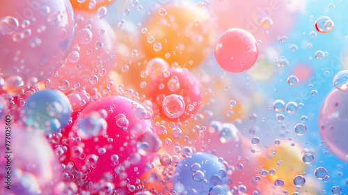 Abstract background with realistic bubbles. Bubbles with rainbow reflection.
