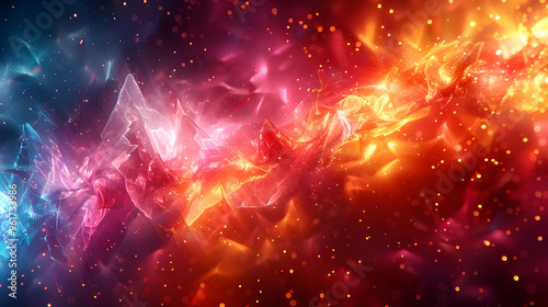 Abstract Background with Red, Orange, and Blue Hues and Sparkles
