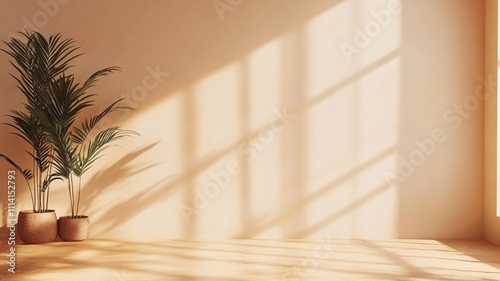 Abstract background with shadows from a window on the wall in a room,