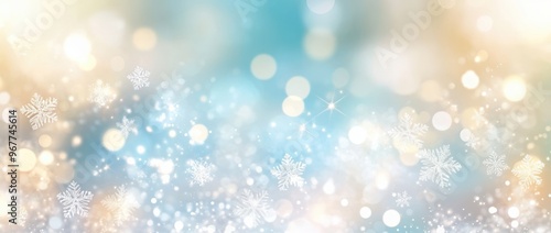 Abstract background with snowflakes and bokeh lights. Winter Christmas pastel blue banner. Space for text. Vector illustration.