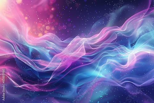 Abstract background with swirling, ethereal, neon-colored smoke and glowing lights.