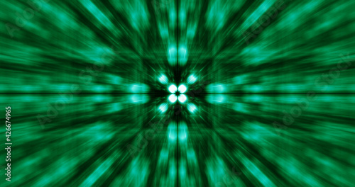Abstract background with symmetrical motion blurred rays of light in green tones
