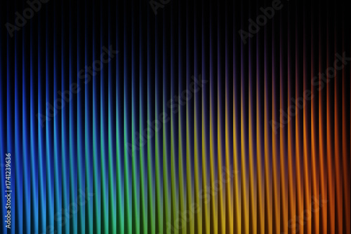 Abstract background with vertical lines in rainbow colors, blue, green, yellow, orange, red, dark background