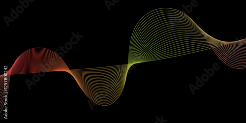 Abstract background with waves for banner. Web banner size. Vector background with lines. Element for design isolated on black. Colorful gradient.