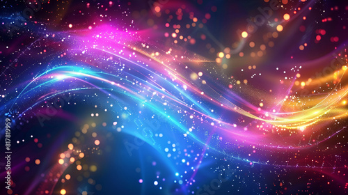 Abstract background with wavy lines and sparkles, A dynamic, dark backdrop illuminated by vibrant neon streaks, Futuristic wave background with glowing particles, 3d rendering