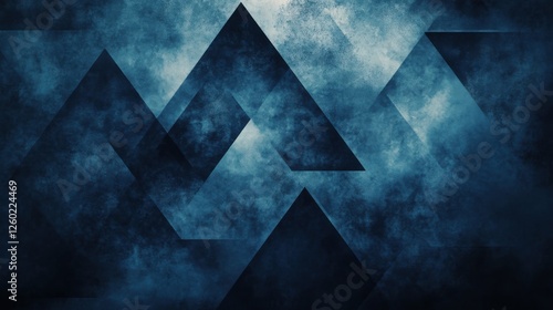 Abstract Banner Template with Intersecting Triangles on Blue Background. Geometric Minimalist Design with Central White Space for Text. Perfect for Modern Use.