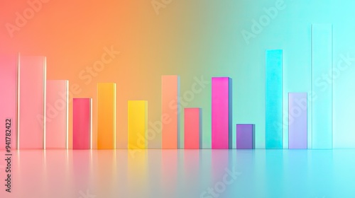Abstract bar chart with colorful bars rising, set against a gradient background, business concept --