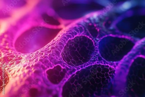 Abstract bioluminescent honeycomb structure with vivid colors.