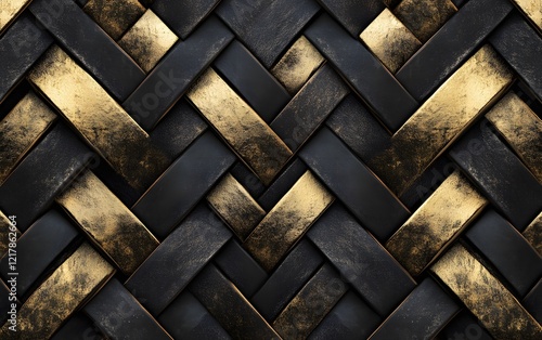 Abstract black and gold herringbone pattern background Modern luxury geometric wallpaper design with golden lines for wall decoration,