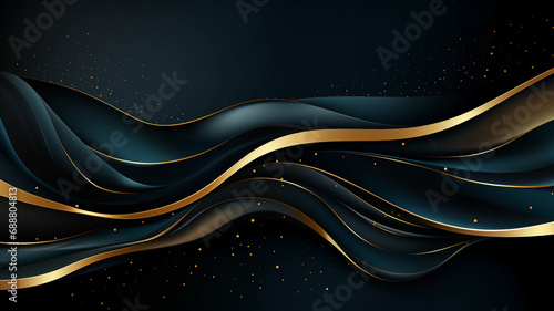 Abstract black and gold waves background. Futuristic design for modern banner template and invitations.