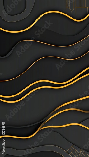 Abstract Black and Golden Flowing Waves. Luxury Style. 3D Rendering Background Illustration