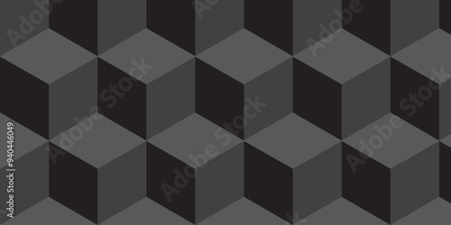 Abstract black and gray from cubes vector art background. Geometric tiles and mosaic creative stylish seamless pattern block cube background. minimal hexagon Cubes mosaic shape vector design.