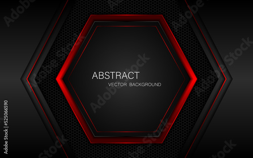 Abstract black and red polygon with red glow lines on dark steel mesh background with free space for design. modern technology innovation concept background