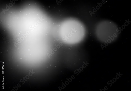 Abstract black and white blurred light streaks with grain texture, creating a dreamy and mysterious cosmic atmosphere.
