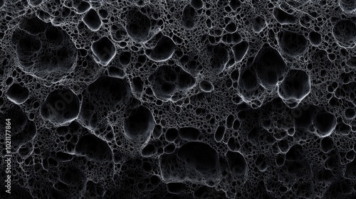 Abstract black and white image of intricate foam bubbles with a sense of depth and texture.