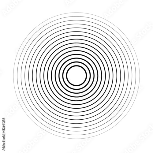 Abstract black and white pattern radiating circular sound wave. Radial concentric circles geometric element. Vector illustration