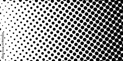Abstract Black and White Polka Dot Pattern, halftone, dots, graphic, pattern. Vertical gradient black halftone dots background. Pop art template, texture illustration. Black Halftone Dotted Texture.