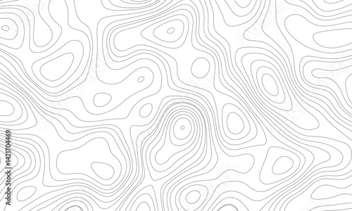 Abstract black and white topographic contours lines of mountains. background. Abstract modern white and black topographic contour map wavy line.