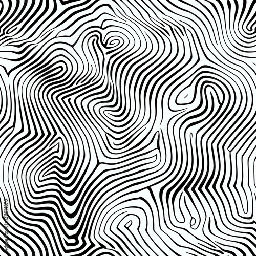 Abstract black and white wavy lines creating hypnotic topographic pattern. Seamless vector background perfect for modern design, textile prints and creative projects.