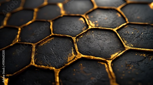 Abstract black background with a gold hexagon pattern, perfect for creating a luxury wallpaper for banners or posters