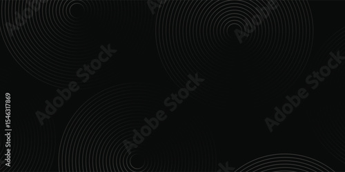 Abstract black background with circle lines pattern. Black metal lines texture. Modern shiny black and gray gradient lines creative design.
