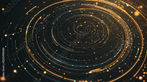 Abstract black background with Colorful circle lines. Digital future technology . Abstract business connection of lines from nodes innovation of communication in the network.