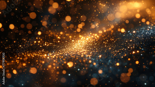 Abstract black background with glowing gold particles