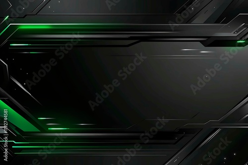 Abstract black background with green accents, futuristic design elements, and geometric patterns, perfect for technology and gaming themes.