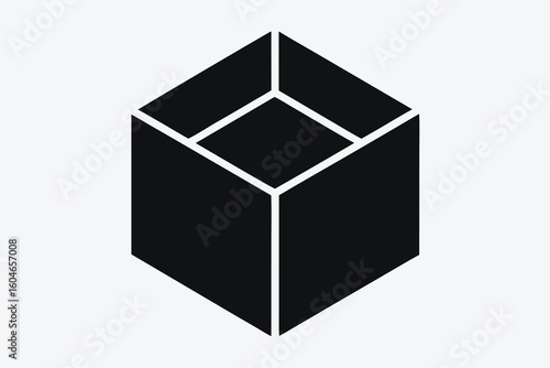 Abstract Black Box Illustration on White Background Modern Geometric Design Minimalist Style Graphic Representation Packaging Concept Unopened Present Mystery Object Design Element