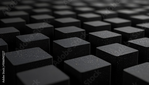 Abstract black cubes arranged in a structured pattern on a dark surface at night