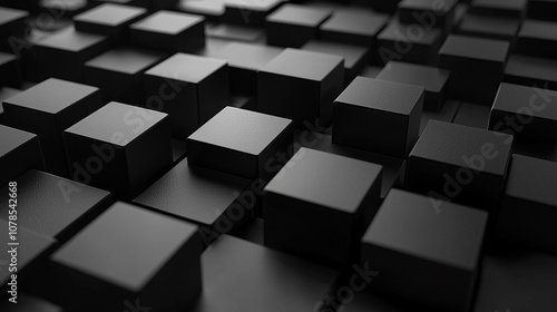 Abstract Black Cubes Texture Background with Geometric Pattern in 3D Rendering
