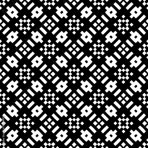 Abstract black figures on a whire background. Seamless texture for fashion, textile design, on wall paper, wrapping paper, fabrics and home decor. Simple repeat pattern.