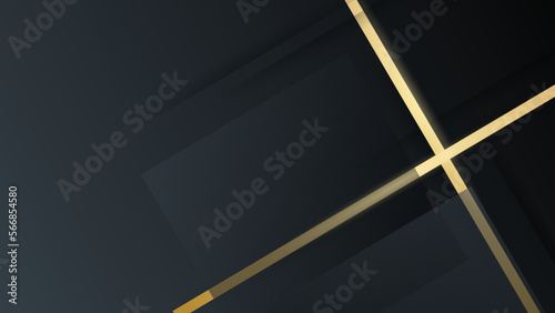 Abstract black geometric background with gold lines. Golden invitation, brochure or banner with minimalistic geometric style. Gold lines, Glitter, Frame, Vector Fashion Wallpaper, Poster, Blackboard.
