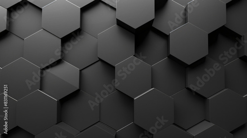 Abstract black geometric background with hexagon pattern, dark grey textured wallpaper for design and presentation