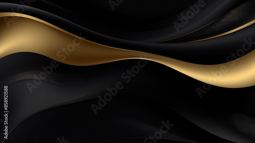 Abstract black gold luxurious noble waves texture background panorama banner for web design backdrop wallpaper illustration, Generative AI