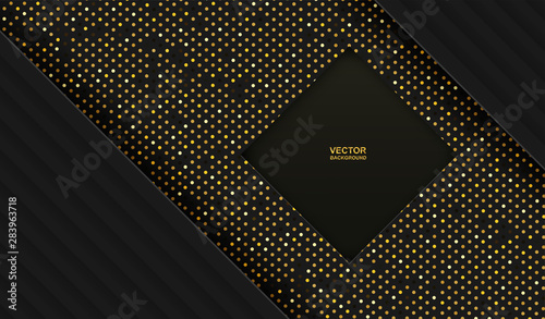 Abstract. Black ,gold paper background overlap. light and shadow. copy space .Vector.