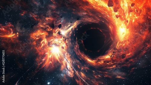 Abstract black hole with a supernova explosion Abstract universe with a black hole and cosmic light