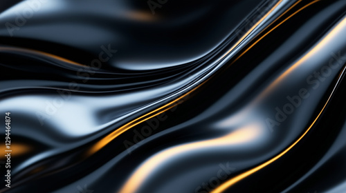 Abstract Black Metallic Fluid Texture with Golden Light