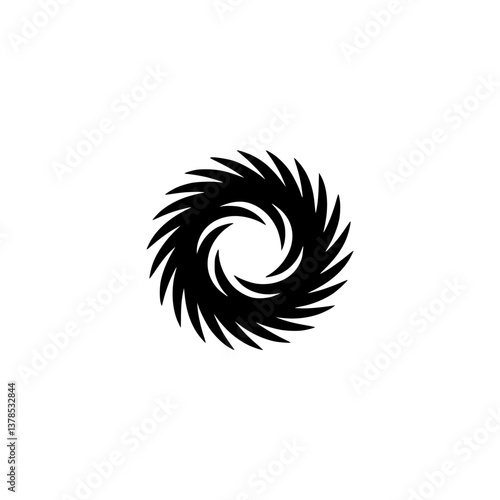 Abstract Black Spiral Logo on White, Geometric Design Element