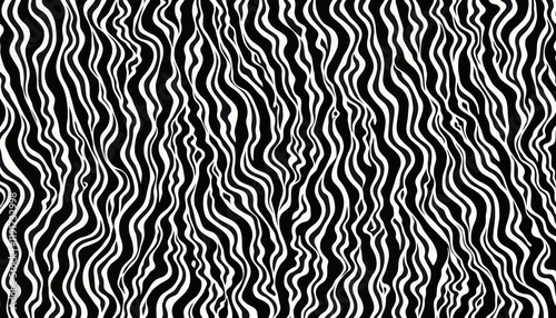 Abstract black, white pattern with wavy, swirled brushstrokes. Bold lines, squiggles create cool, trendy design. Seamless horizontal banner suitable for various uses. Graphic style playful, fun.