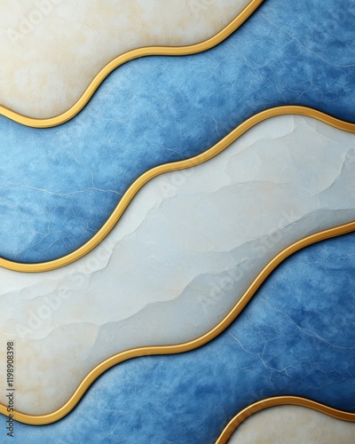 Abstract Blue and Beige Waves with Gold Accents