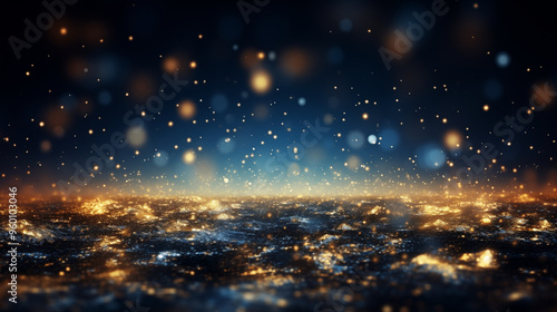 Abstract Blue and Gold Bokeh Background with Sparkles