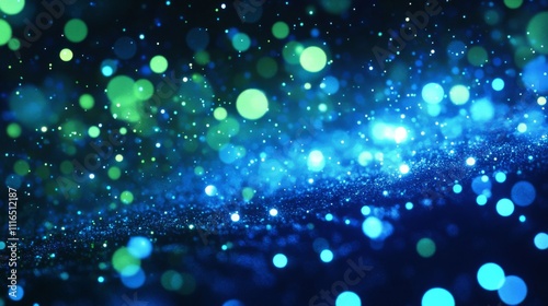 Abstract Blue and Green Bokeh Background with Sparkling Lights