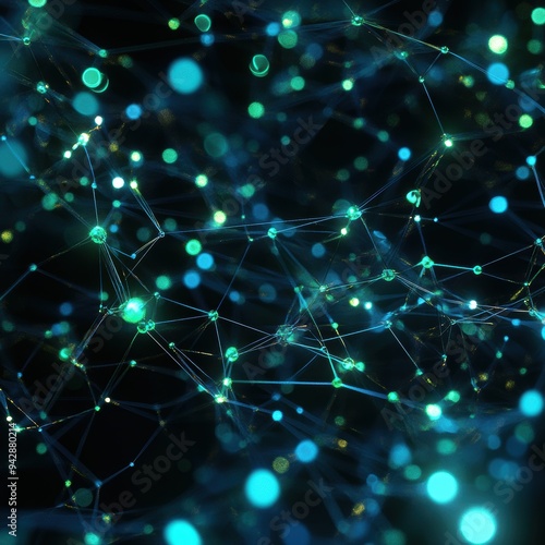 Abstract Blue and Green Network Connection Background - Futuristic Technology Concept