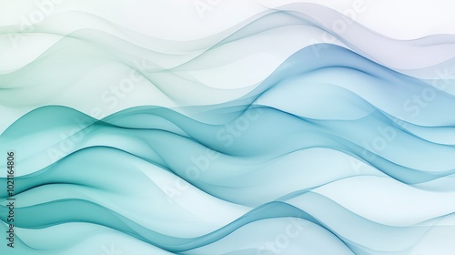 Abstract blue and green waves form a soothing, flowing pattern against a light background.