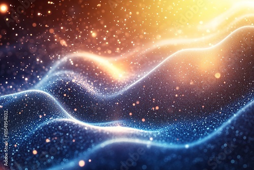 Abstract blue and orange glowing wave with bokeh.