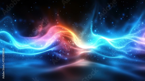 Abstract blue and orange light waves glowing, flowing energy motion, technology background design for digital innovation, futuristic space theme with starry night and vibrant colors visualization