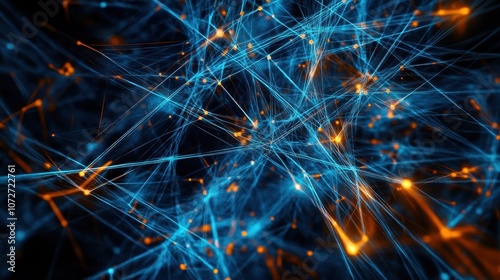 Abstract Blue and Orange Network Background - Digital Connectivity, Technology, Data, Web, Internet, Artificial Intelligence