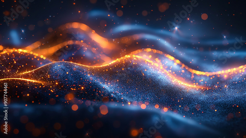 Abstract blue and orange particles swirling and flowing, creating a dynamic and mesmerizing visual effect