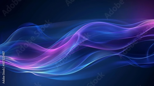 Abstract blue and purple background with blurred wavy lines, dark gradient, high resolution, banner design, dark blue background, blur effect, smooth curves, elegant